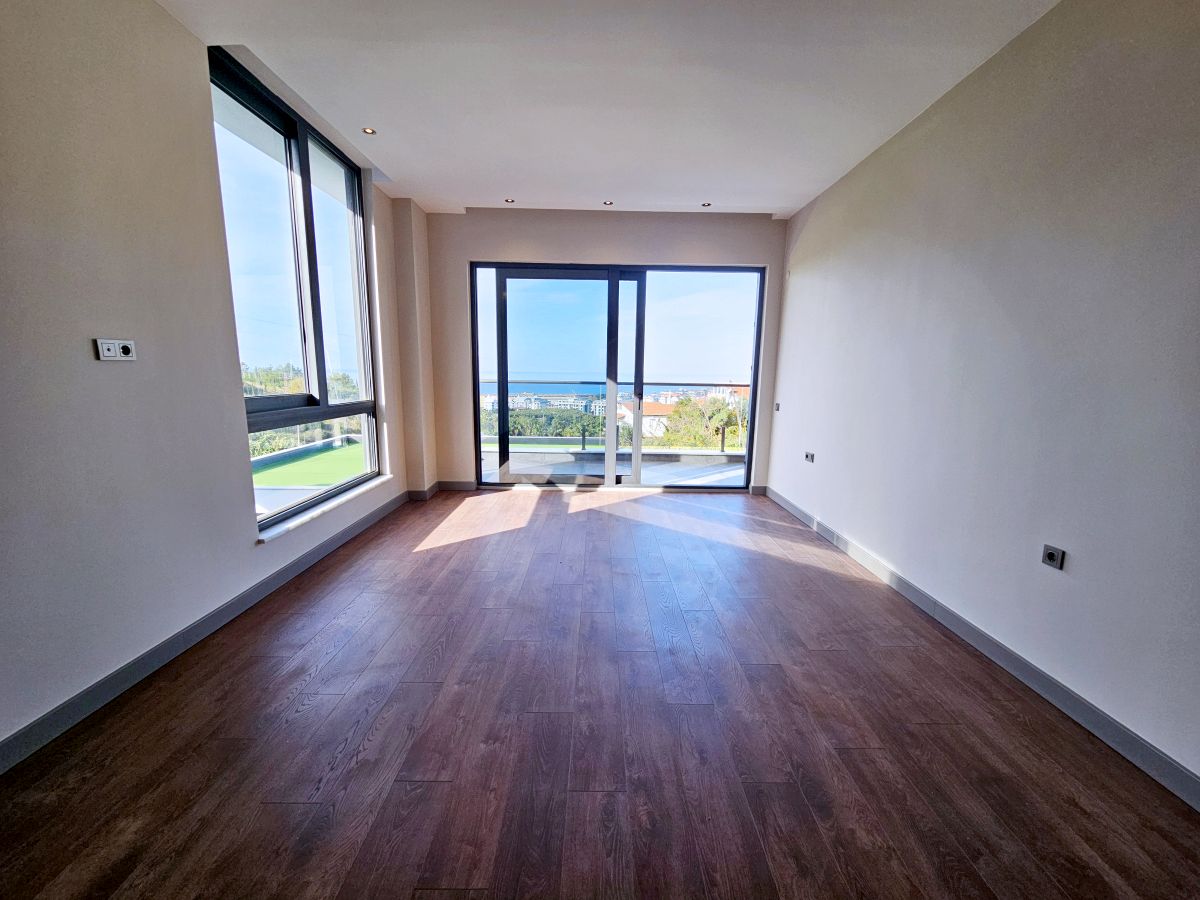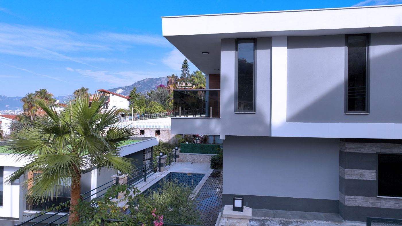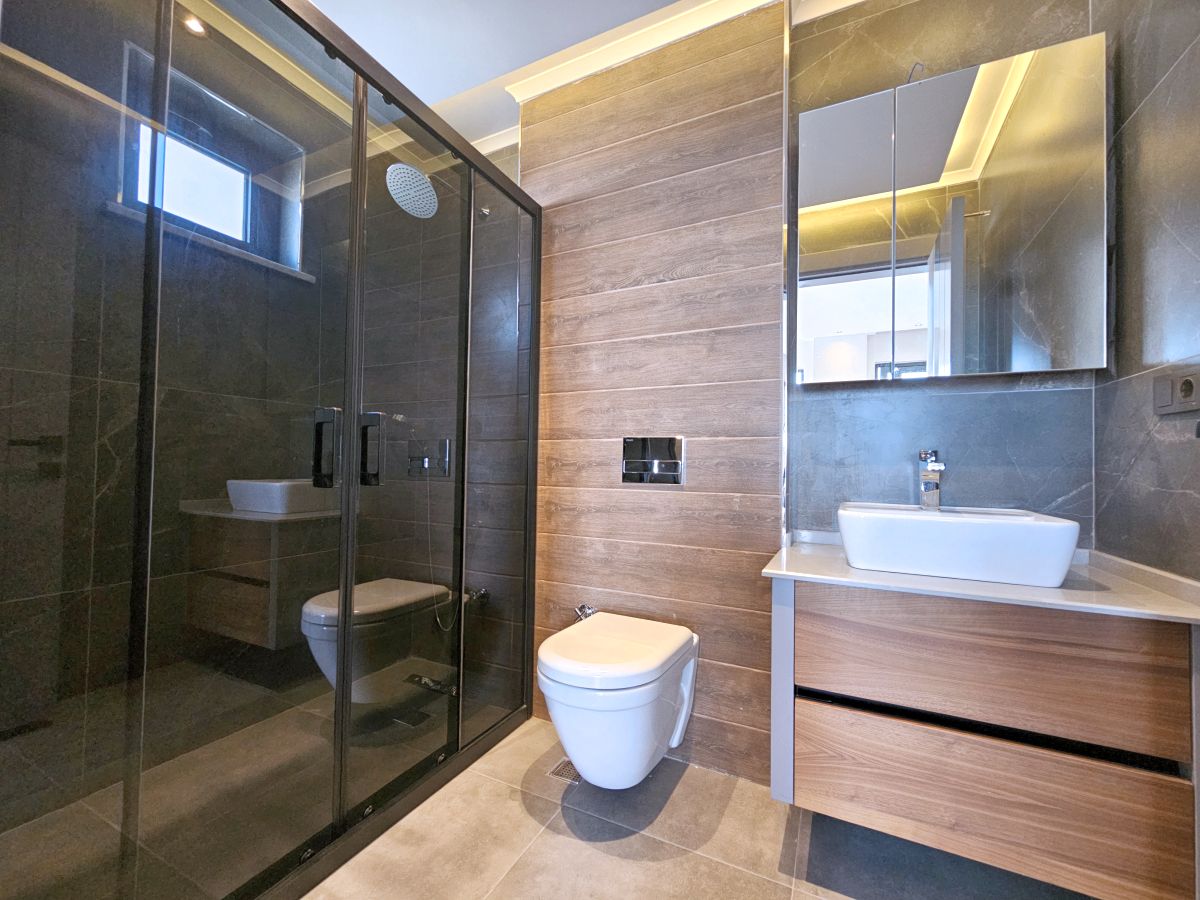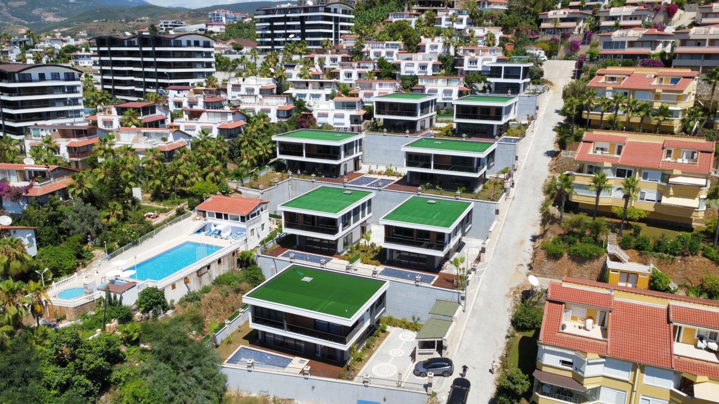 Виллы в стиле Модерн, с отделкой натуральными материалами, спот освещение, алюминиевые профильные окна и двери, подогрев пола, спутниковое ТВ и др. В стоимость входят также: кондиционер в каждой комнате и полный пакет бытовой техники. Планировка 4+1, общая площадь 230 и 250 кв.м.