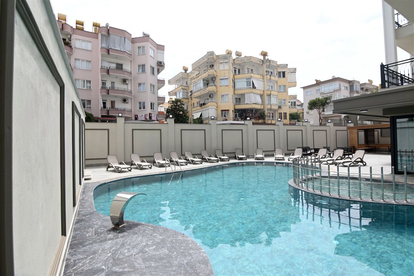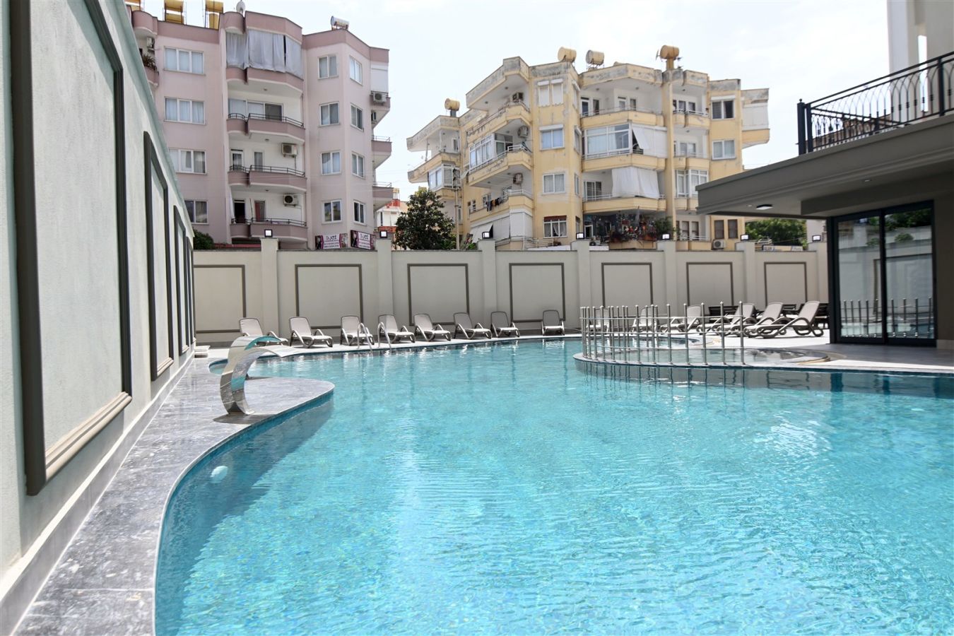 Теперь подробнее о комплексе. Данный проект представляет застройщик с 30 летним опытом в сфере строительства в центре Алании, недалеко от известного пляжа Клеопатры, расстояние до моря всего 700 м. С учетом того, что центр Алании достаточно густо застроен, для данного проекта выбрано уникальное месторасположения с видом на море и крепость.