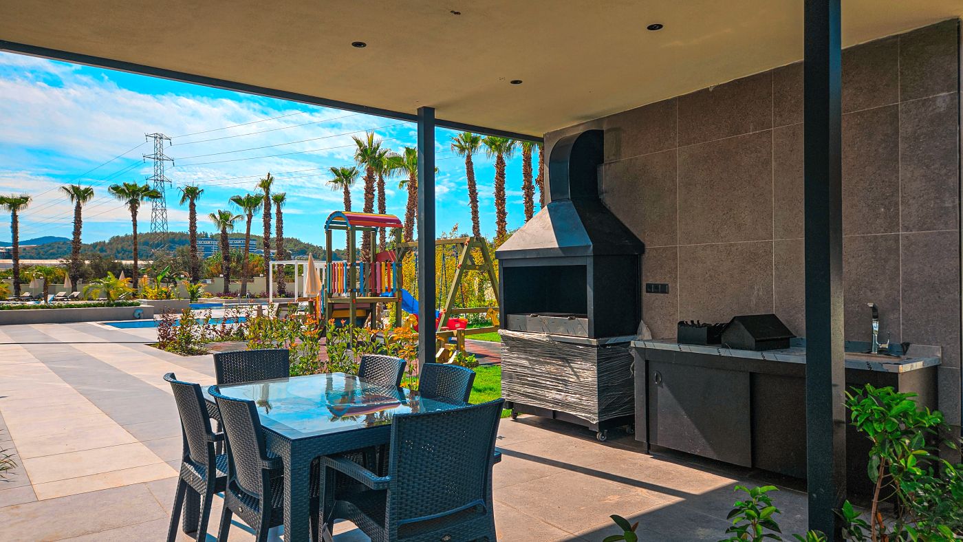 На территории комплекса много зелени, газонов, пальм, садов, очень интересный ландшафтный дизайн и много зон отдыха для жильцов. Оформление всей территории комплекса перекликается с окружающими пейзажами и идеально вписывается в природные красоты.