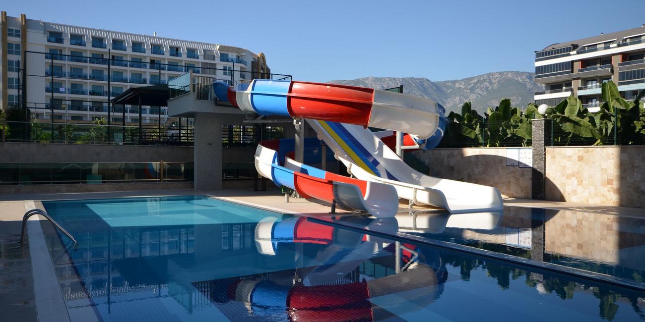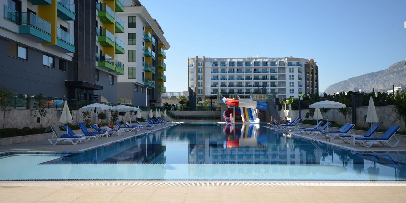 Территория комплекса зелёная и благоустроенная, идеально подходит для отдыха всей семьёй. В вашем распоряжении: большой открытый бассейн с террасой для загара, крытый подогреваемый бассейн, SPA-центр, массажная комната, тренажёрный зал, детская площадка, зона барбекю, беседки, теннисный корт и крытая парковка.